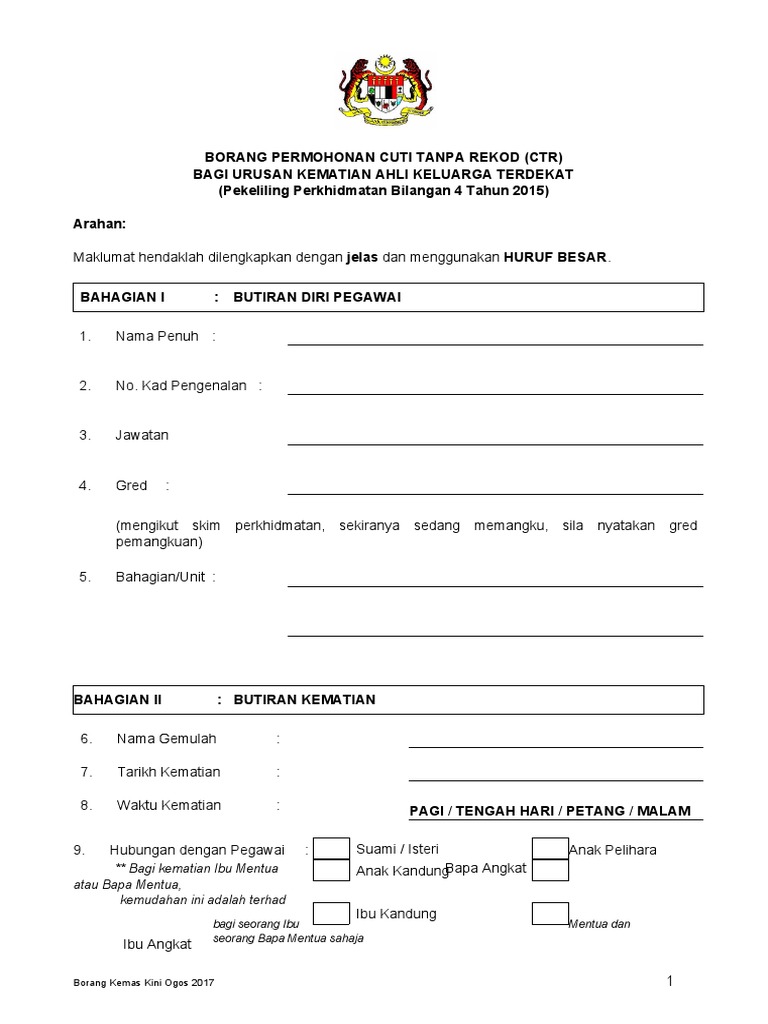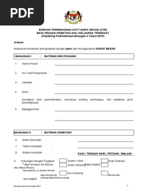 Kemudahan cuti tanpa rekod bagi urusan kematian ahli keluarga terdekat hendaklah dilaksanakan cute766 borang cuti tanpa cuti tanpa rekod cuti kematian pekeliling.