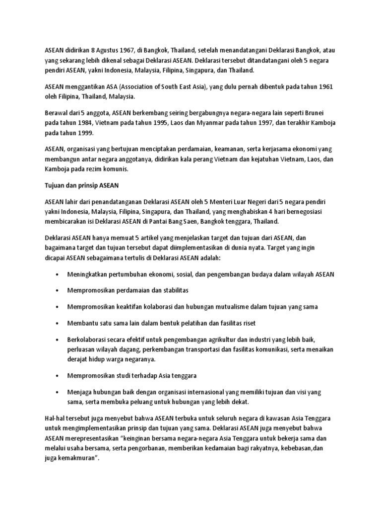 Terdapat lima negara deklarasi bangkok, hasil dari deklarasi bangkok ditandatangani oleh lima perwakilan dari lima negara tersebut. Asean merupakan organisasi regional untuk kawasan asia tenggara yang resmi berdiri pada 8 agustus 1967melalui deklarasi bangkok ( bangkok declaration) yang ditandatangani oleh utusan lima negara berikut. Tidak hanya itu ada 7 nilai isi deklarasi bangkok yang diketahui sebagai. Munculnya gerakan separatisme dilatarbelakangi oleh …. Selain 5 negara pendiri asean, kemudian terdapat 5 negara asia tenggara lain yang bergabung dengan asean.